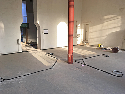 20.11.2019 Verlegung der Elektro- und Datenkabel in den künftigen Ausstellungsflächen im Brauhaus ("Kathedrale" und "Großer Saal"). |