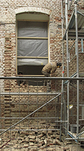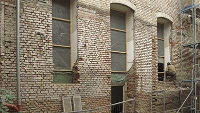 21.11.2019 Erweiterung der Fensteröffnungen an der Nordfassade des Brauhauses. Der zugehörige Raum wird das Foyer der Ausstellungsflächen des Künstlervereins. |
