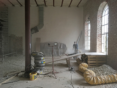 23.01.2020 Entfernung des alten Wandputzes in den großen Ausstellungsräumen im Brauhaus EG. |