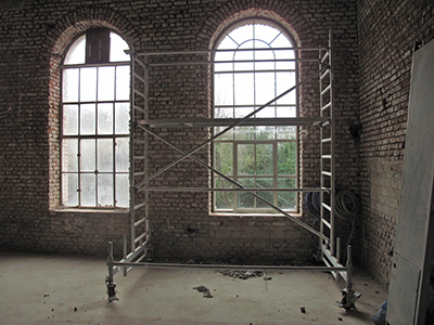 02.02.2020 Die "nackigen", vom Wandputz befreiten Ausstellungsräume im Brauhaus. |
