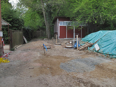 Schon nur noch ahnbar: Entwässerung und Kanalisation im Außenbereich vor Pferdestall und Mühlhaus. |