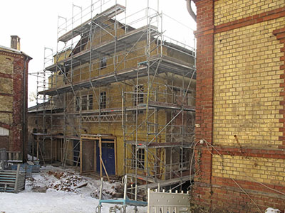 23.01.2017 Das Gerüst am Malzhaus und am Südflügel bzw. Turm steht. |
