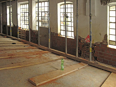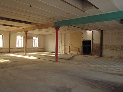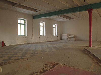 Dachgeschoss des Brauhauses mit der mittlerweile vollständig entkernten ehemaligen Wohnung von Dieter Benks. |