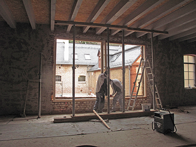 Putz- und Trockenbauarbeiten im Obergeschoss des Malzhauses. |