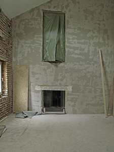 Im Treppenhaus selbst wird derweil eine erste Putzschicht aufgetragen, bevor die Geschossdecke später entfernt wird. Noch führen die Türen aus Malzhaus (links) und Südflügel (rechts) teilweise ins "Nichts". | ||