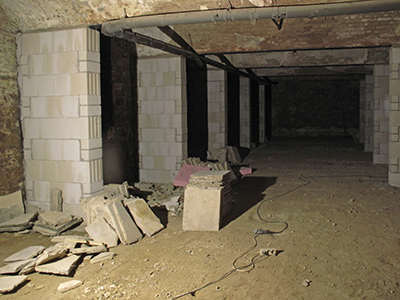 09.02.2019 Im Kellergeschoss des Pferdestalls werden schöne und intakte Solnhofener Kalksteinplatten vom alten Fußboden geborgen. |