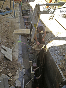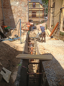 Abdichtungsarbeiten am Fundament des Brauhauses. |